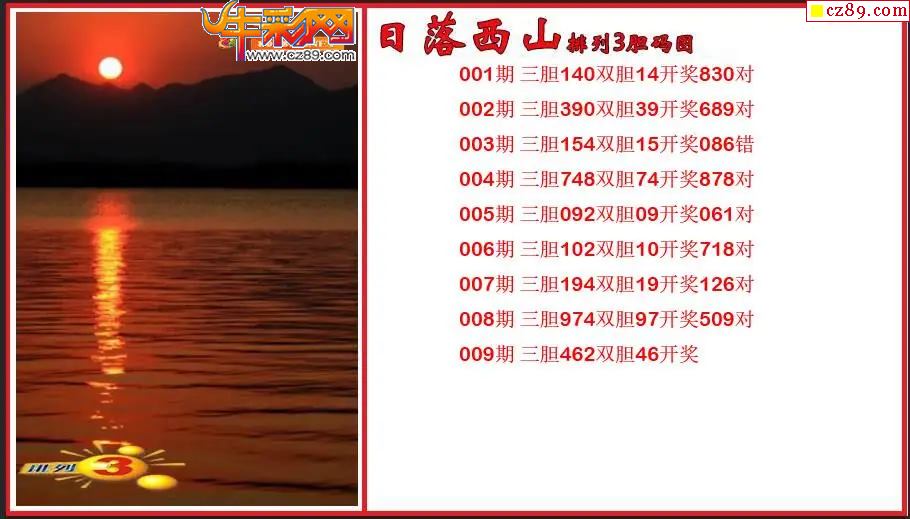 首页 > 排列3图谜 > 2026009期P3日落西山胆码图谜