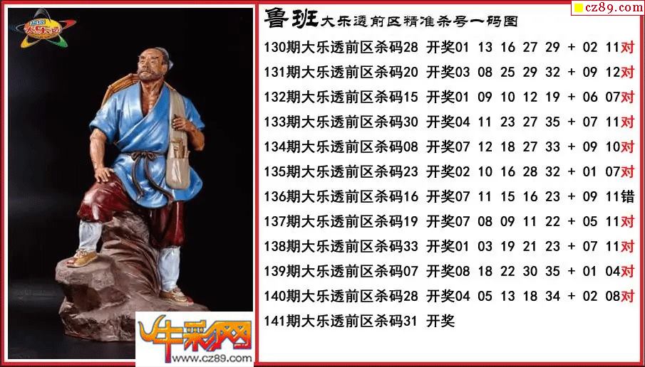 大乐透141期鲁班前区精准杀号一码图